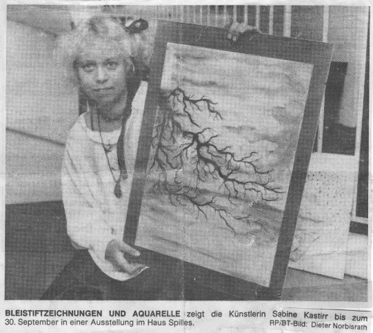 In einem Jugendcafé in Benrath, wo die Stadt den Jugendlichen kostengünstig ermöglicht sich zu treffen, bekam ich eine Einladung nach dem ersten Zeitungsartikel über die Ausstellung im Lindenhof. Es waren noch genug Werke vorhanden und es war an der Vernissage eine Gruppe von jungen Leuten und auch Mitarbeitern, die sich die Bilder erklären liessen und es war wieder ein Journalist von einer anderen Zeitung da, der sich entschieden hatte nur das Bild mit Untertitel in die Zeitung zu stellen. Er selbst war aber sehr angesprochen von den Titeln und sagte, dass er nie eine Kirche besuchen würde, aber immer nach dem Sinn des Lebens am Suchen war. Er war sehr überrascht, dass es ein Gespräch war frei von Überzeugungsdruck sondern wie unter alten Freunden.